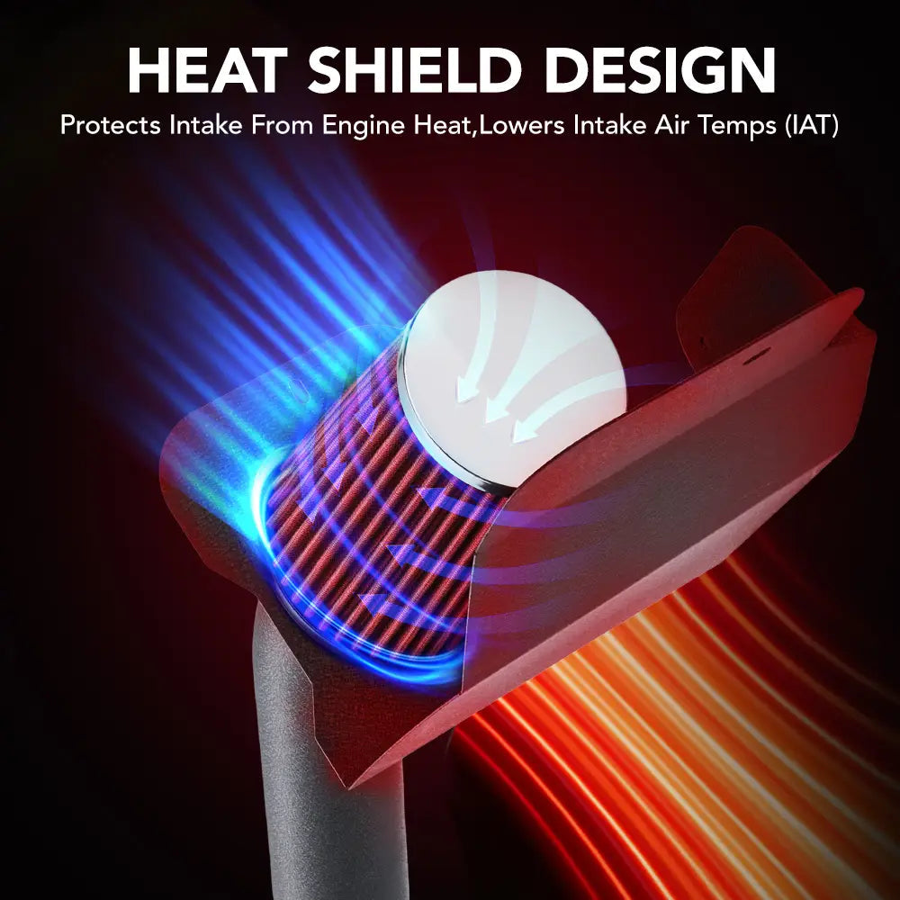 Heat Shield: Included — full enclosure seals filter from the engine bay heat routes to the coolest available air source