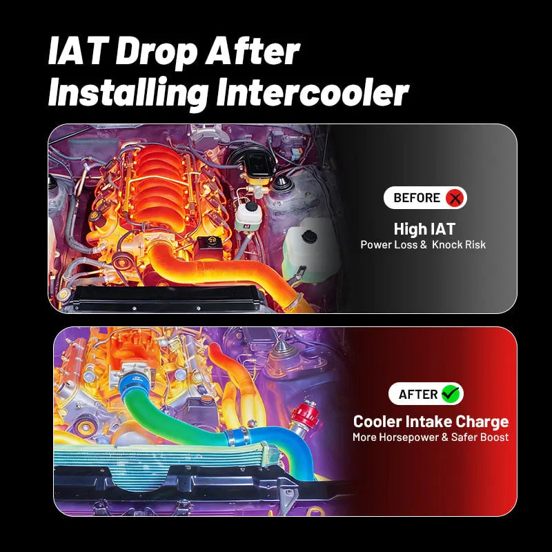 - Efficient Cooling & Power Gain: Bar & Plate intercooler design offers exceptional heat dissipation and high-pressure resistance, drastically lowering intake air temperature, reducing detonation risks, and optimizing fuel combustion for enhanced horsepower and torque