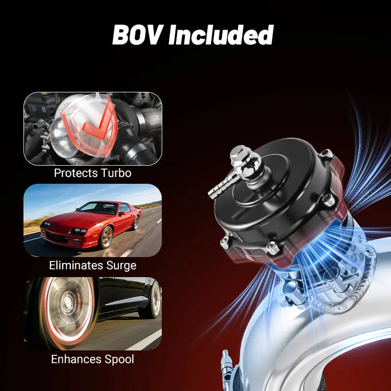 - Integrated BOV (Blow Off Valve): Releases excess boost pressure to prevent turbo backpressure damage, extending turbocharger lifespan