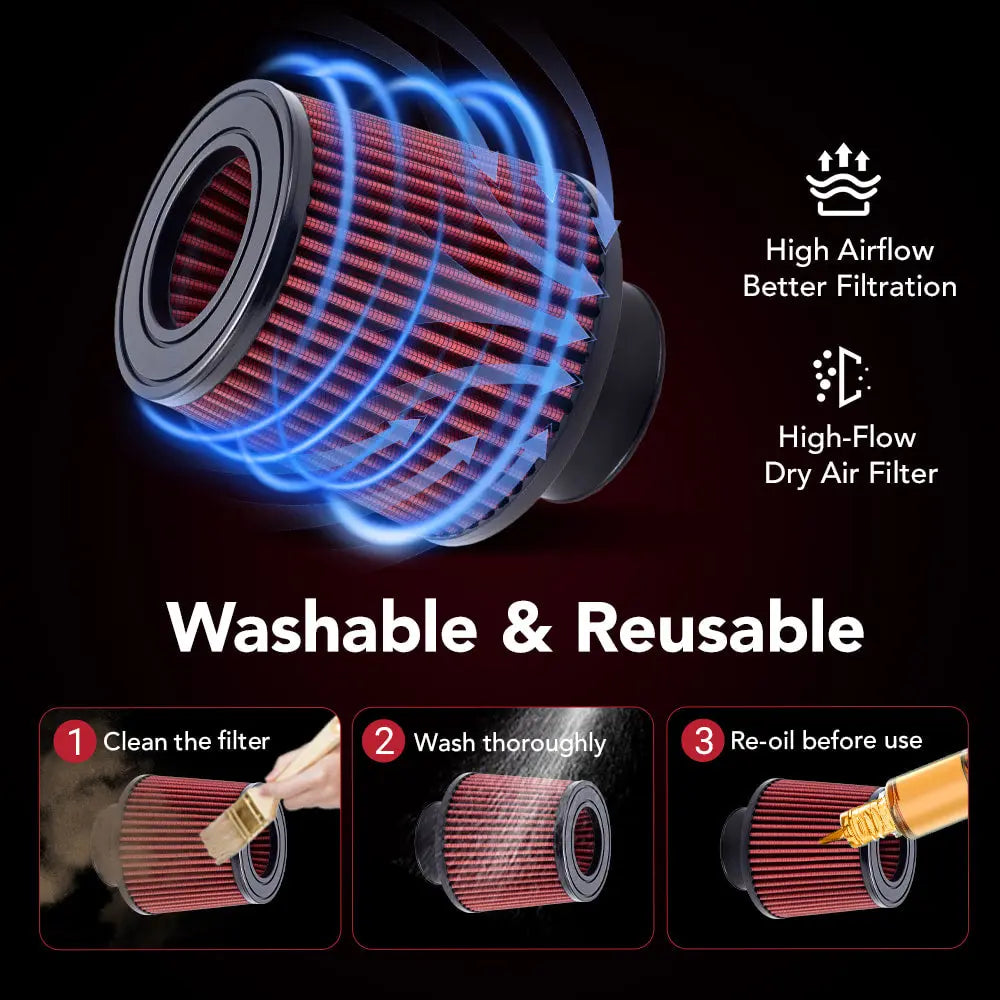 Perfect Fitment & Easy Install: Vehicle-specific design guarantees a bolt-on fit with no modifications; includes all parts needed to replace stock intake pipes, suitable for DIY installation.
