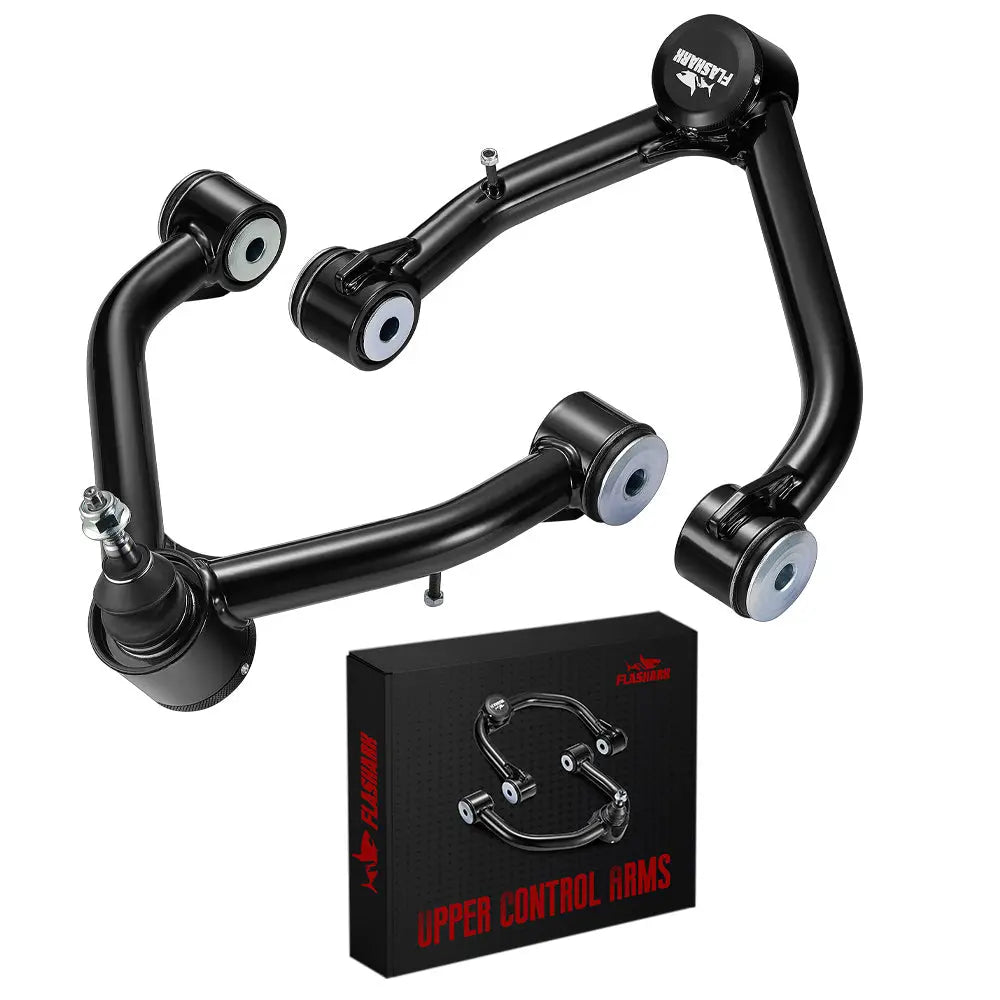 Flashark Front Upper Control Arms are designed to provide the ultimate strength, stability, and appearance. They are TIG-welded and arrive fully assembled and ready to install, with ball joints, bushings, and hardware included. Greasable fittings allow easy maintenance of the ball joints.