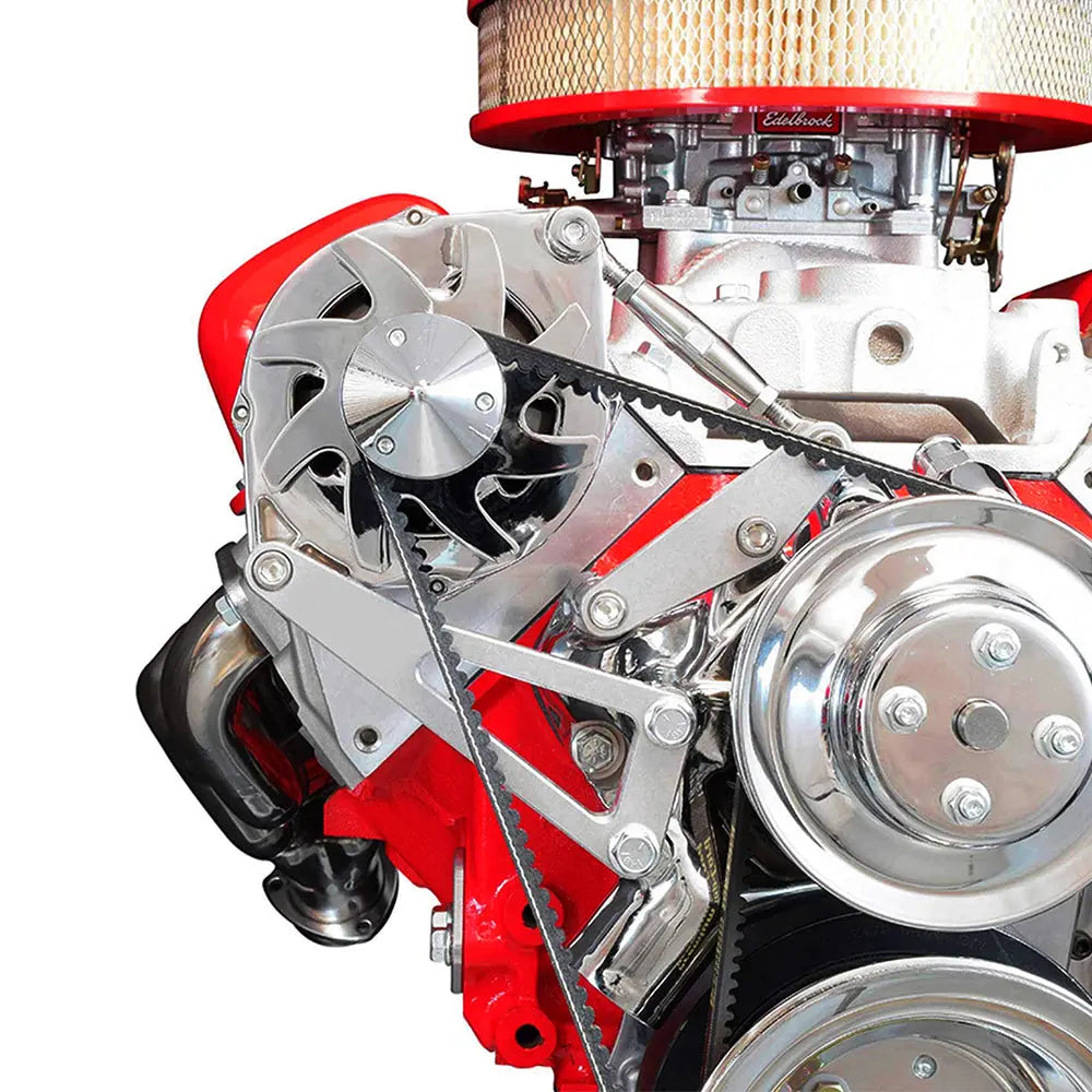 • Compatible Alternators: Chevy alternators with 6.56 inch, center-to-center bolt holes (12si style alternators)