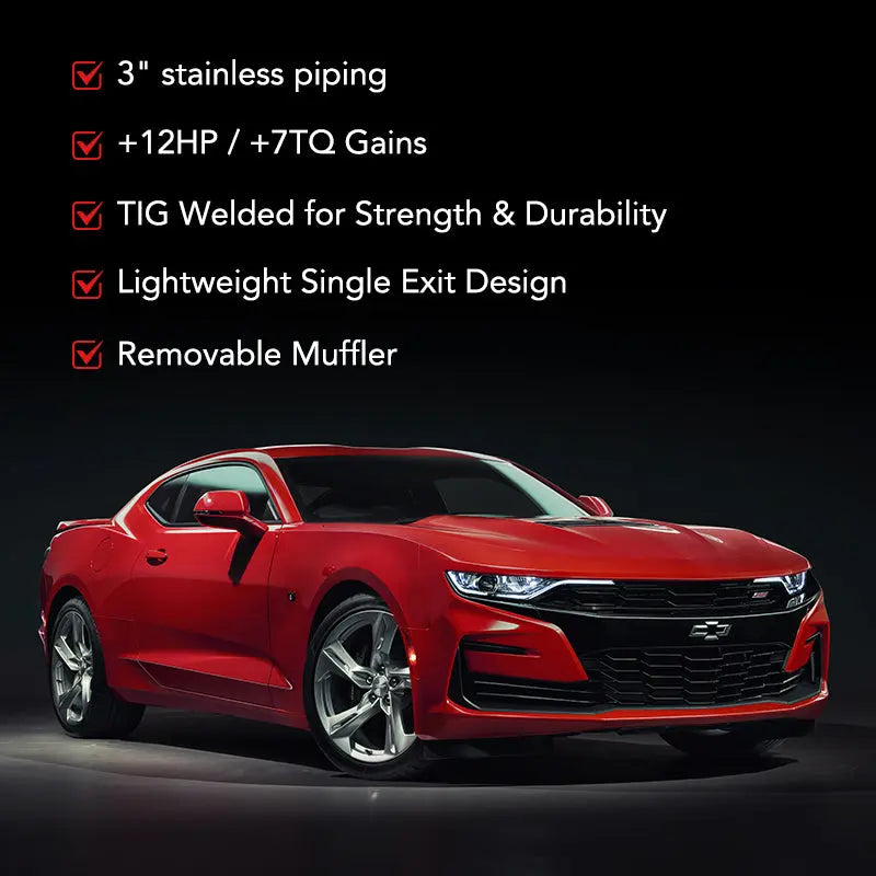 Performance & Sound: Unleash your Camaro's true potential! This cat-back system reduces backpressure for improved exhaust flow, resulting in a noticeable gain in horsepower and torque, especially in the mid to high RPM range. Enjoy a deeper, more aggressive exhaust tone at idle and a thrilling, race-inspired roar under acceleration – a significant upgrade from the quiet stock system.