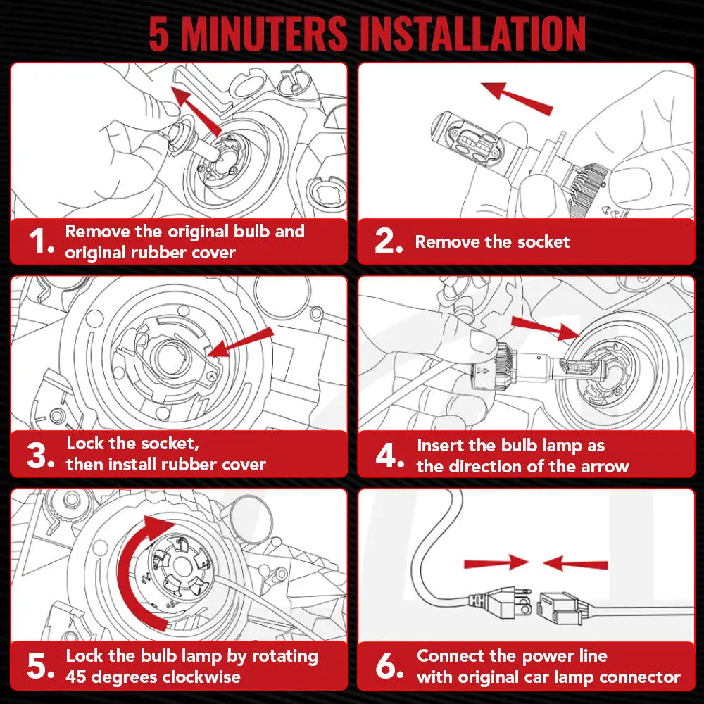 - 5 Minutes Easy Installation: 9006 led fog light bulbs are optimized in appearance, almost 1:1 size halogen bulbs, which perfectly solves the problems that will be encountered during installation, such as dust cover issues. HB4 fog light bulbs truly plug-n-play without any modification in just 5 minutes