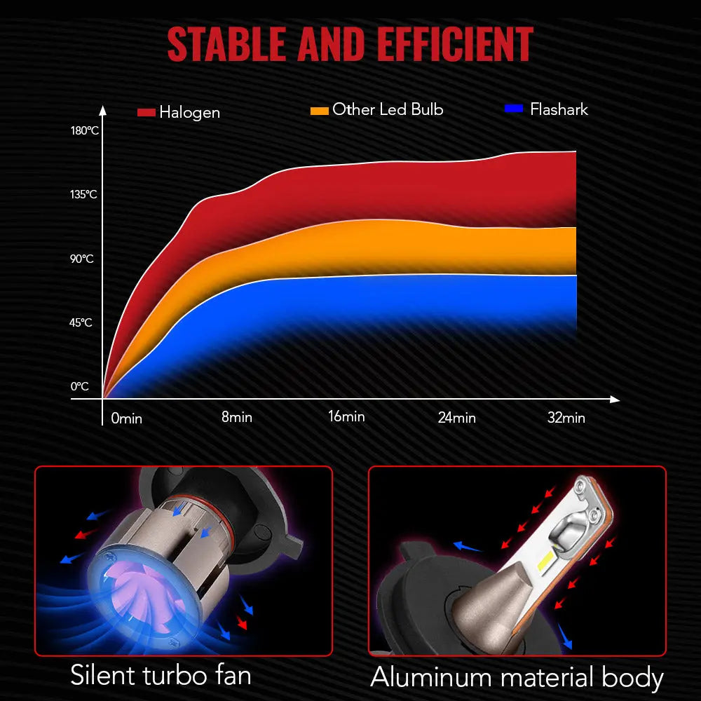 - 24,000LM & 800% Brightness: Flashark H4 LED bulbs use double-sided LED chips to deliver 24,000LM per pair and 800% super brighter LED light bulbs than halogen bulbs. LED headlights with 6000K xenon white light, providing a clear vision for night driving and earlier detection of obstacles ahead, maximizing your reaction time