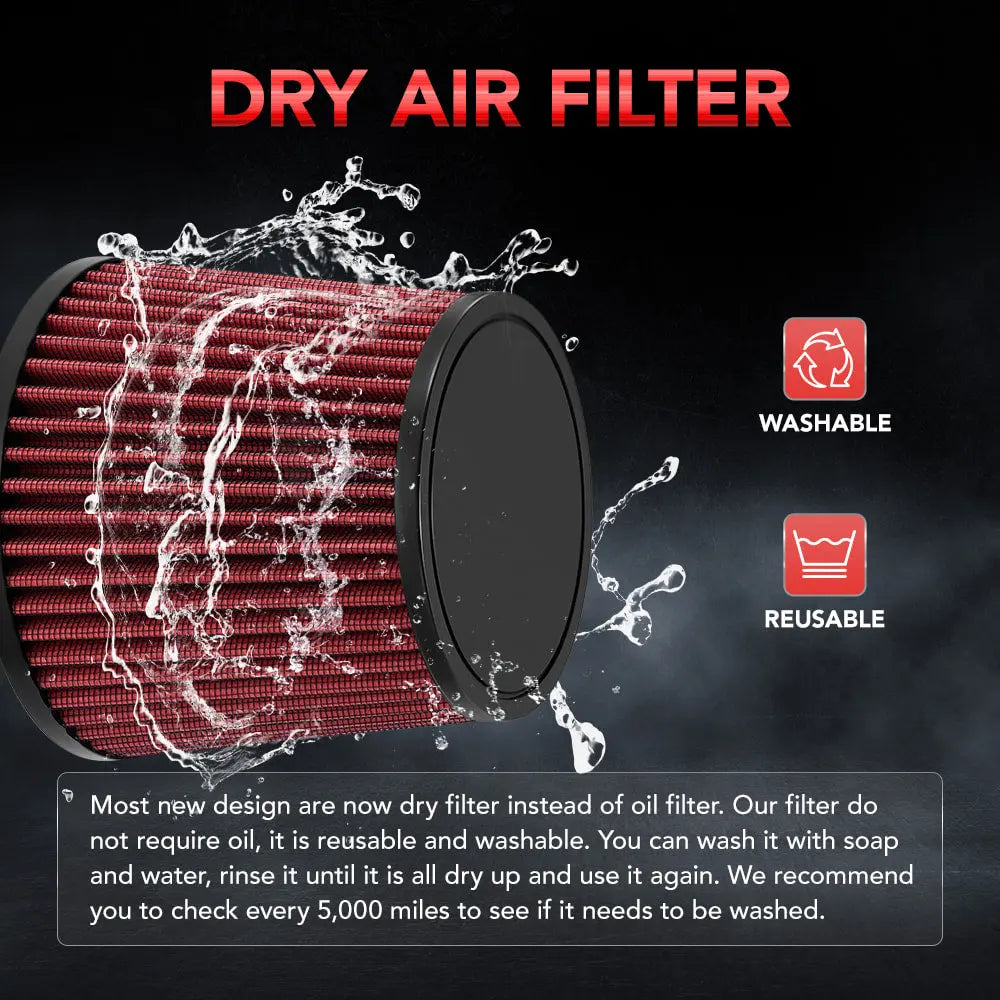 Filter: Washable & Reusable High-Flow Filter (50,000 miles service life)