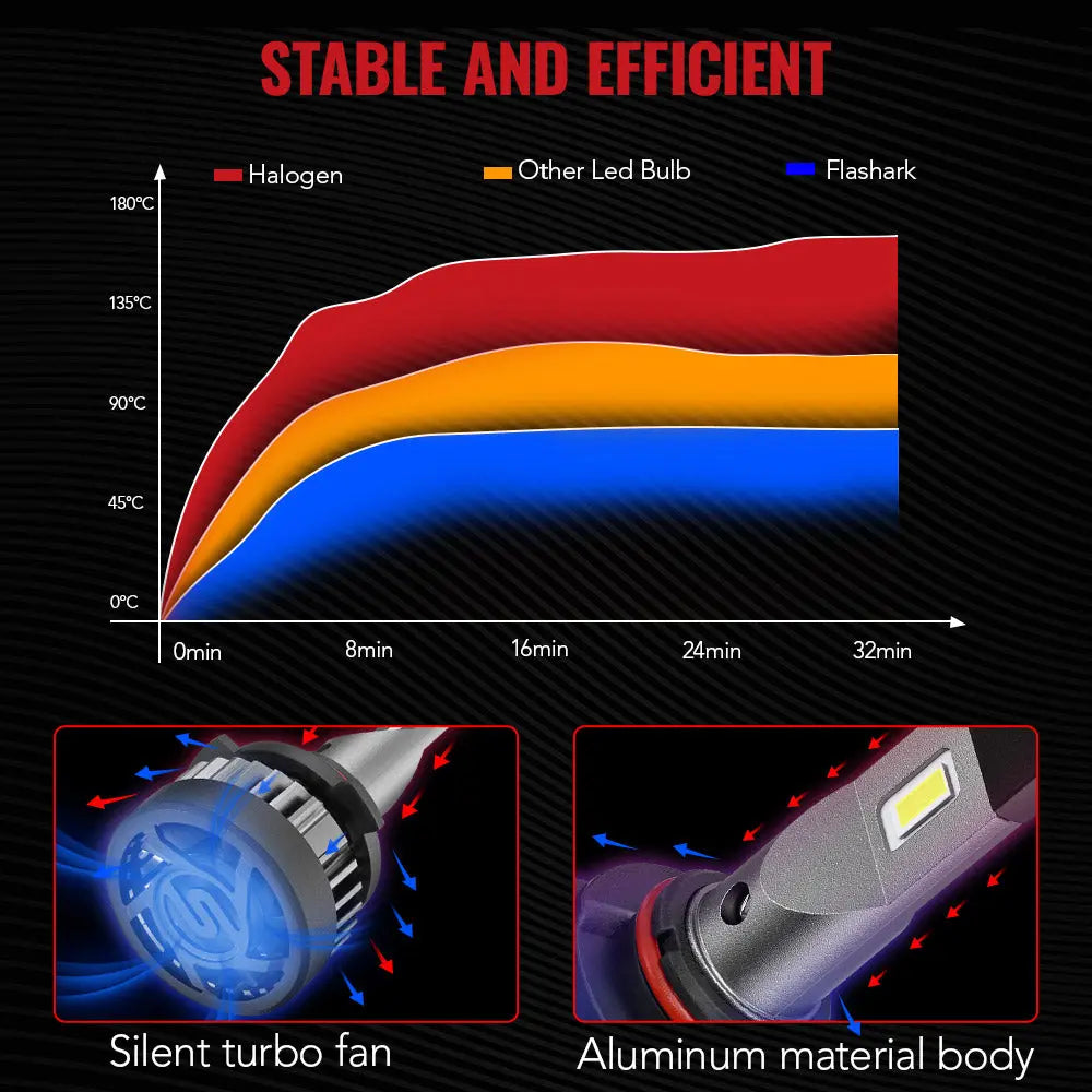 - Long-Lasting Performance: Our effective heat dissipation system, including an intelligent temperature control chip and 20,000RPM silent turbofan, ensures that our X2 9005/HB3 LED light bulbs work in all kinds of conditions for up to 10 years.